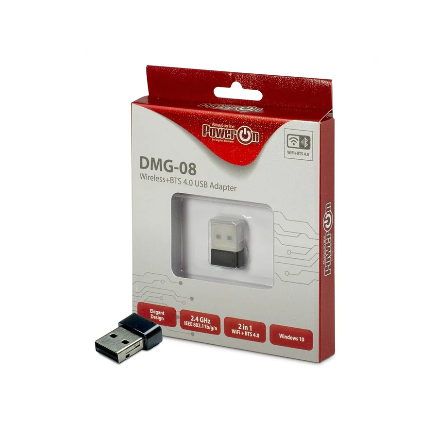 Le DMG-08 est un adaptateur 2 en 1 Wi-Fi et Bluetooth 4.0. Il vous permet de connecter votre ordinateur portable ou PC au réseau Wi-Fi de votre domicile ou de votre bureau. Cet adaptateur USB 2.0 Wi-Fi (802.11 a/b/g/n (Wi-Fi 4)) est idéal pour accéder à Internet à une vitesse allant jusqu’à 150 Mbps sur le réseau 2,4 GHz.